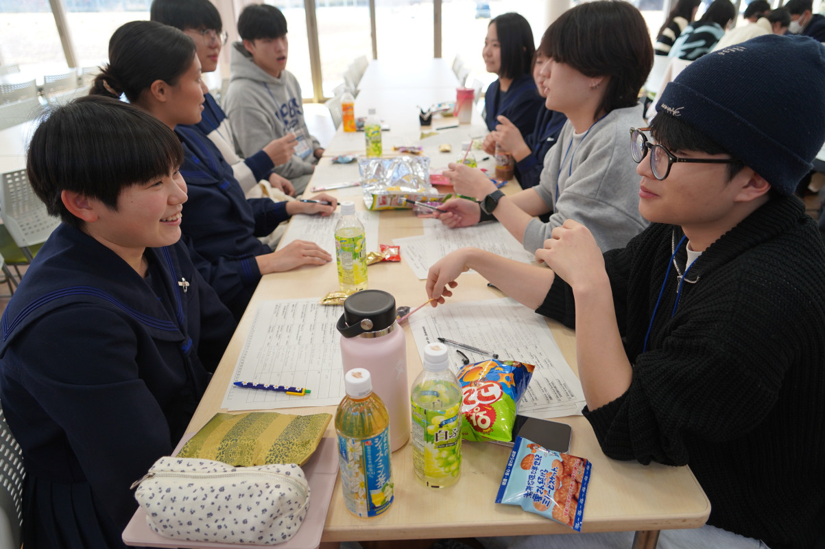 1月22日には、5年英語コース・中国語コースの生徒たちとの交流授業が行われました。授業では、生徒たちはすぐに打ち解け、英語、日本語、韓国語を駆使して活発にコミュニケーションを図りました。光州国際高校の生徒たちは、この交流会が3日間で一番楽しかったと話していました。
