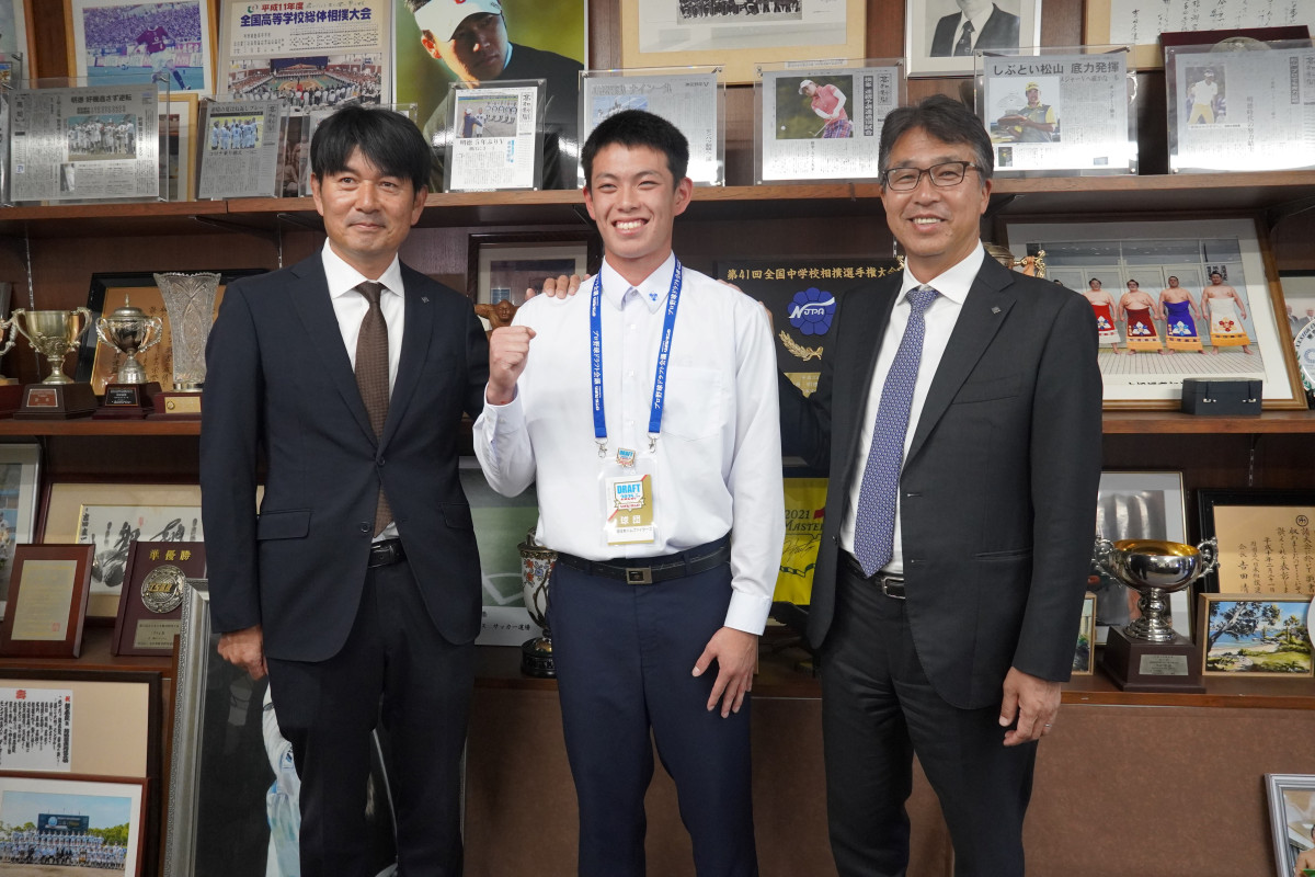 プロ野球ドラフト会議で北海道日本ハムファイターズから5位で指名を受けた高校野球部の藤森海斗君。