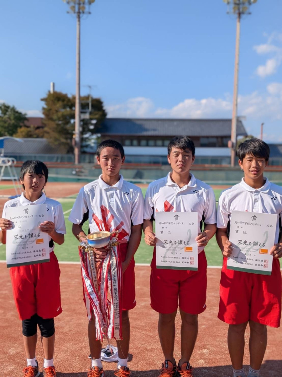 高知県中学校ソフトテニス冬季大会が11月1日•2日、INOUE•東部スポーツパークテニスコートで行われ団体優勝、個人戦でも優秀な成績を収めました。