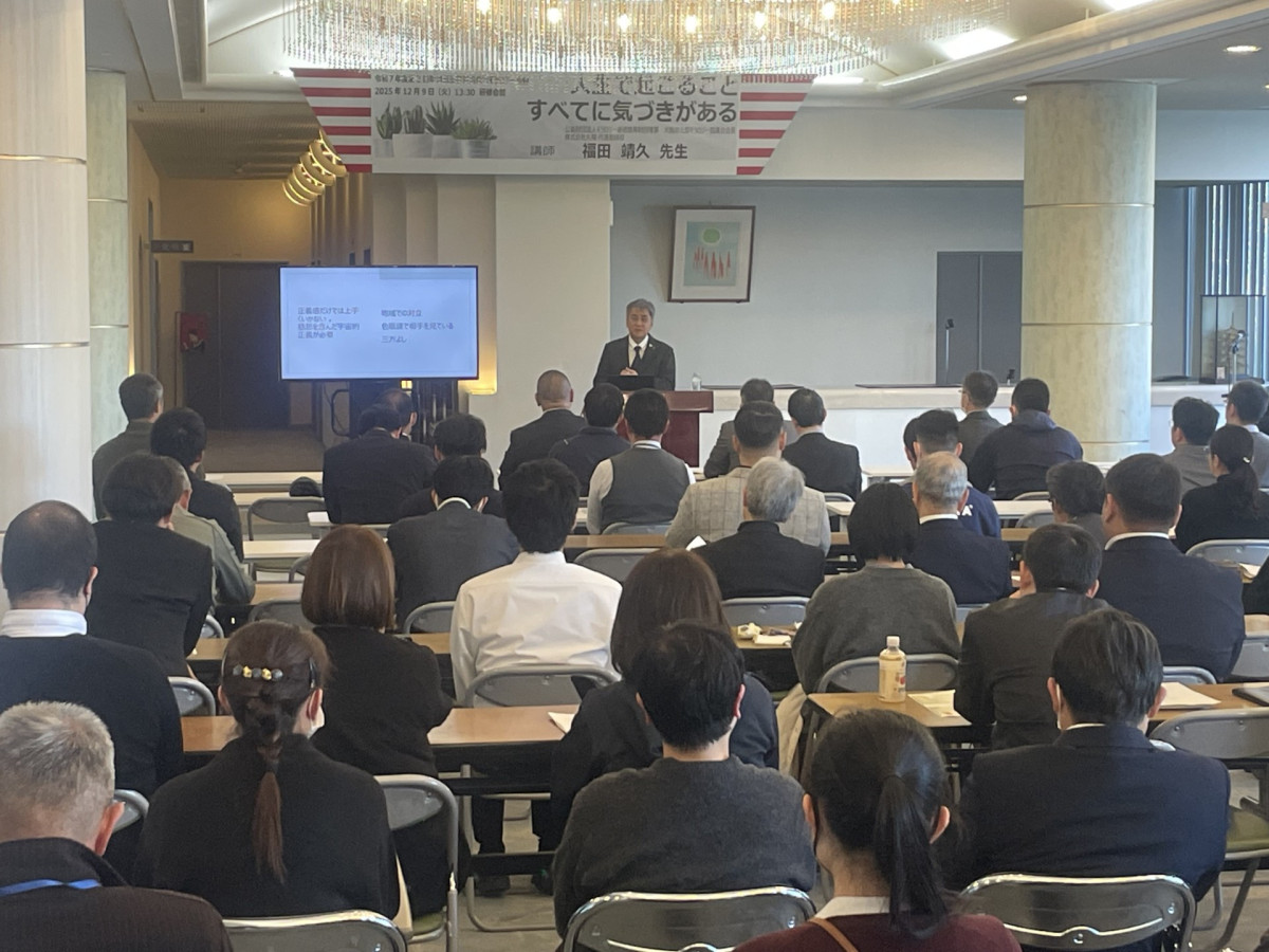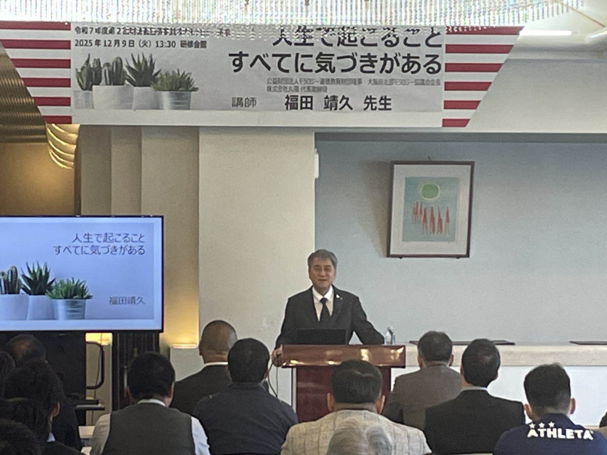 今回の講師には、公益財団法人モラロジー道徳教育財団理事・大阪府北部モラロジー協議会会長・株式会社丸福代表取締役である 福田靖久先生 をお迎えしました。