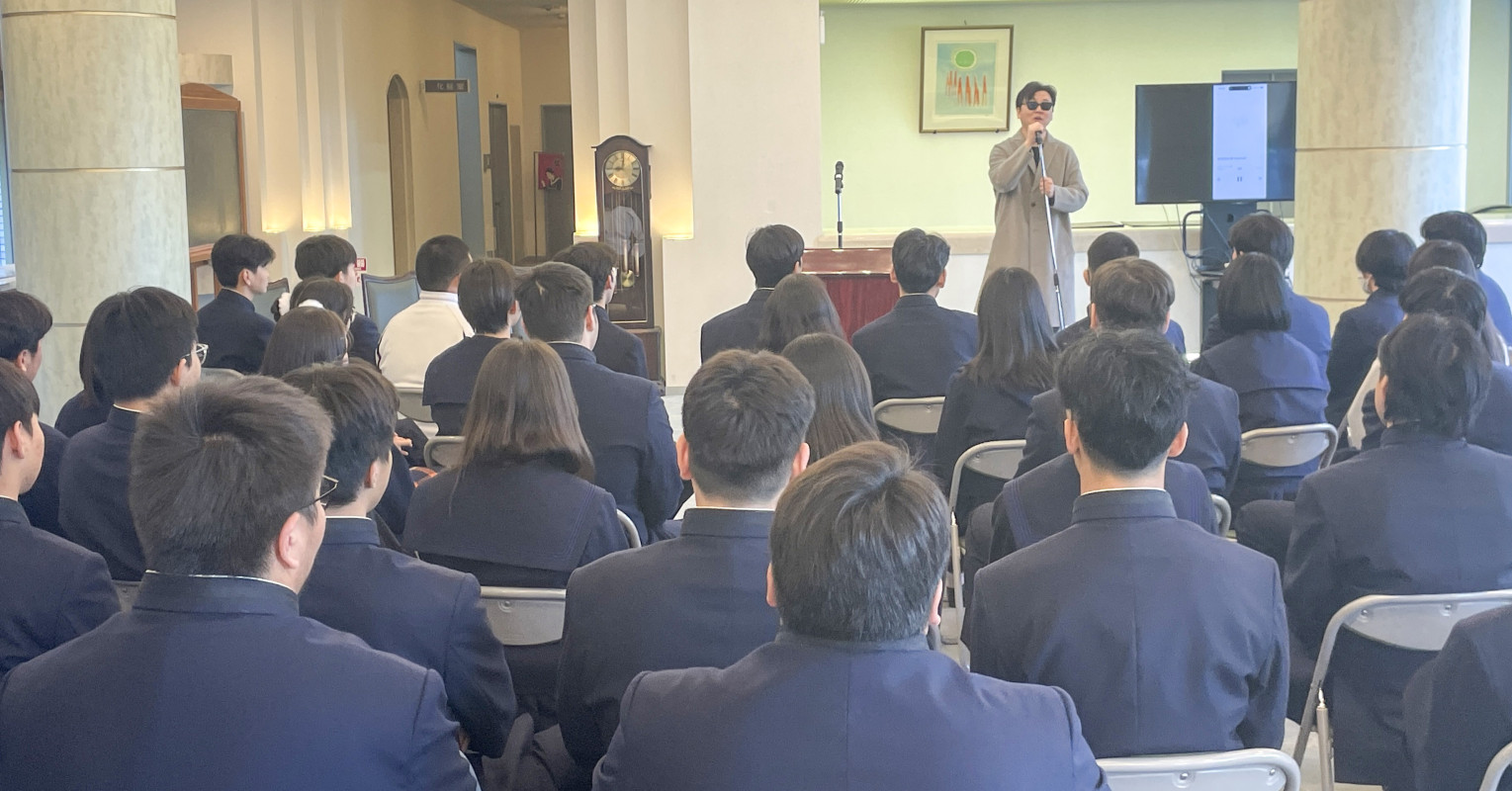本校に在籍する中国・内モンゴル自治区およびモンゴルの生徒を前に、日本との交流や大学進路をテーマとした講演が行われ、日本との文化や人のつながり、留学を通じて広がる可能性についてお話しいただきました。生徒たちは、自身の将来や故郷との関わりを重ねながら、熱心に耳を傾けていました。