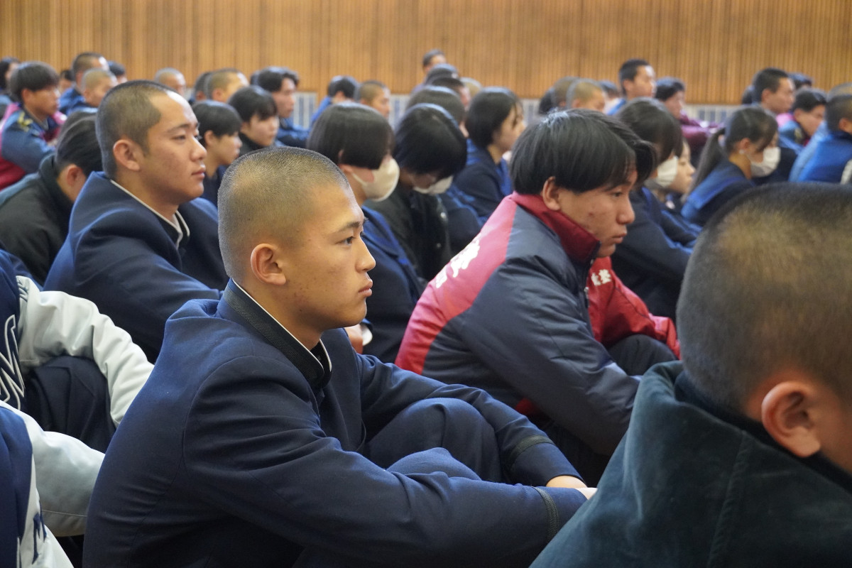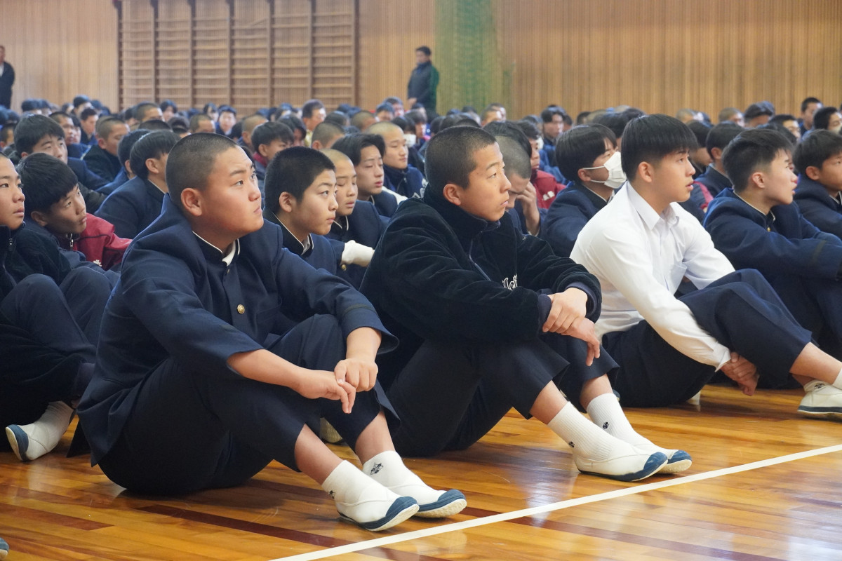 校長先生からは、新年恒例として初日の出を見に行った際のお話がありました。多くの先生方と共に朝日を迎え、太陽が昇るにつれて周囲が温かくなっていくことへの感謝、そして仲間と一緒にいることで、さらに大きな力をもらえたことを実感されたそうです。生徒の皆さんにも、今年の目標をしっかりと立て、その目標を原動力に日々を過ごしてほしいと激励されました。