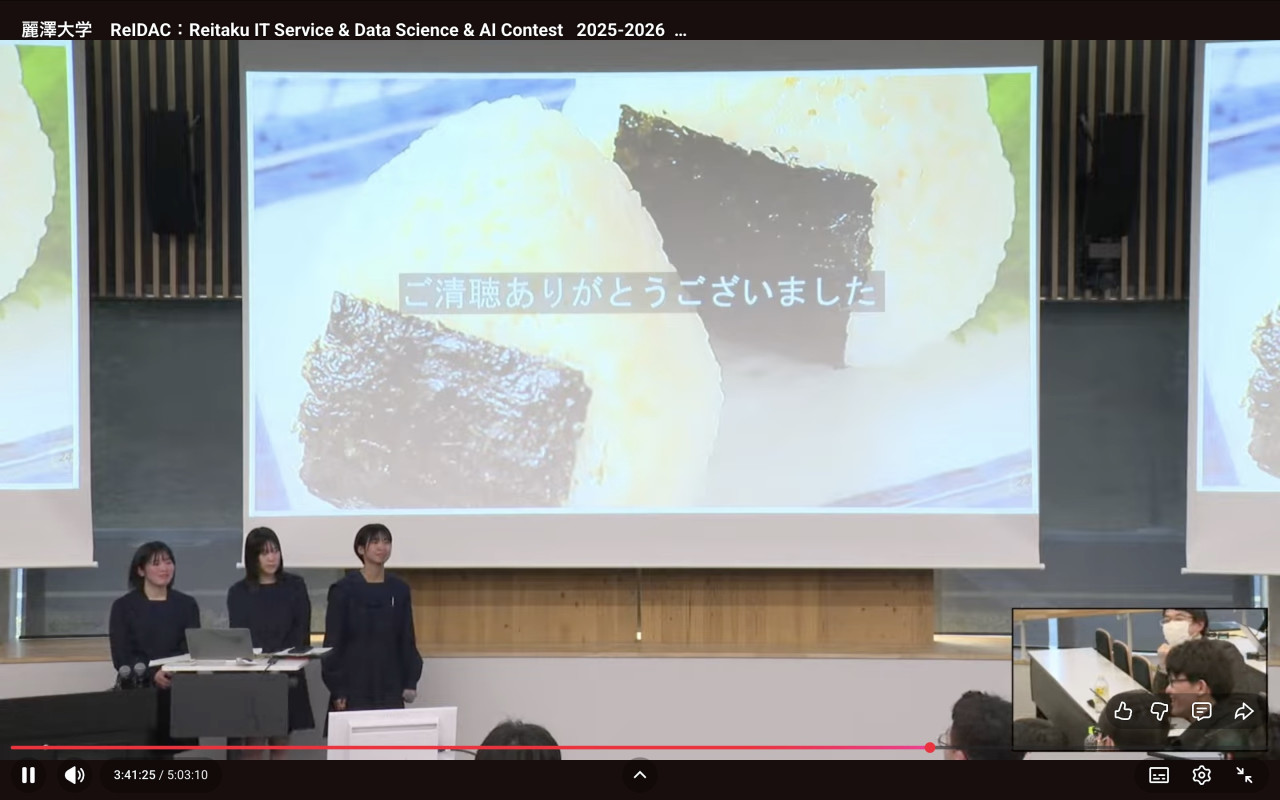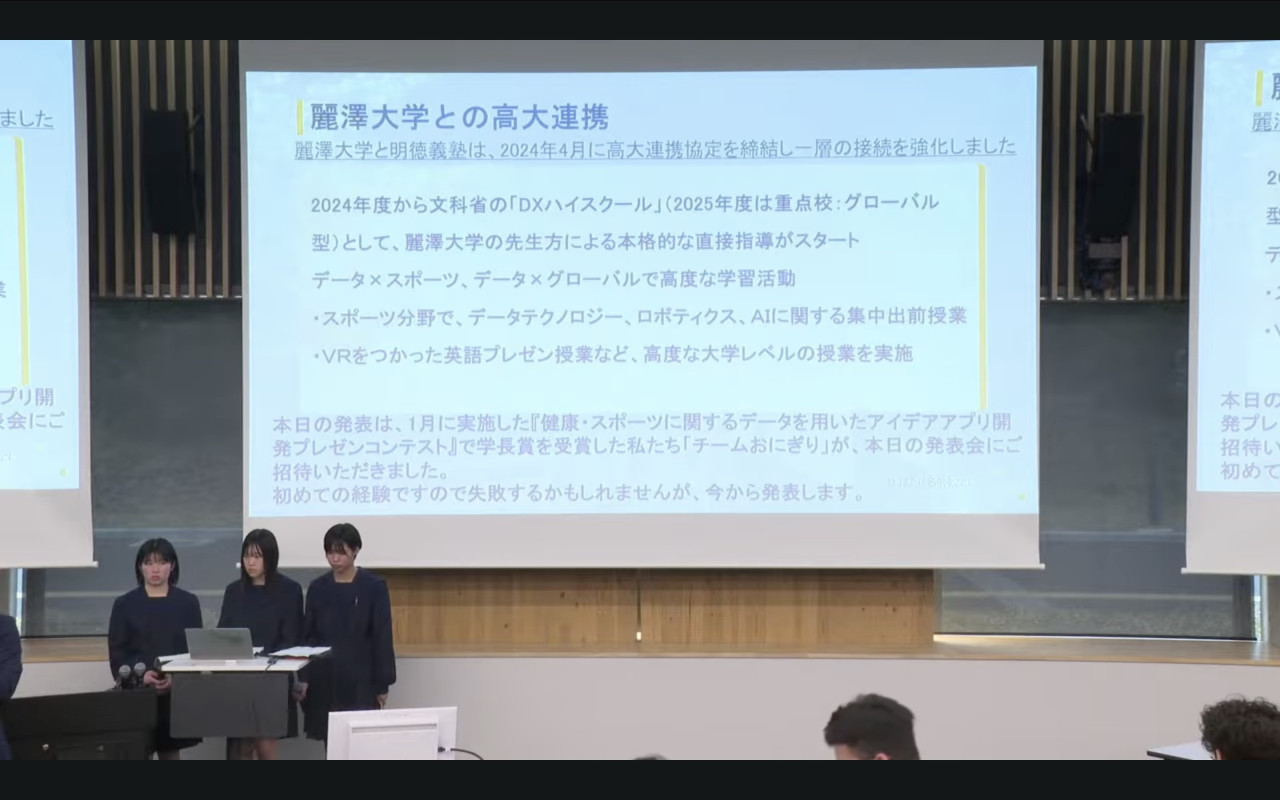 この受賞を受け、2月12日、麗澤大学(千葉県柏市)で開催された「情報・データサイエンス・AIコンテスト(ReIDAC)」研究発表会に招待され、本校代表として研究発表を行いました。