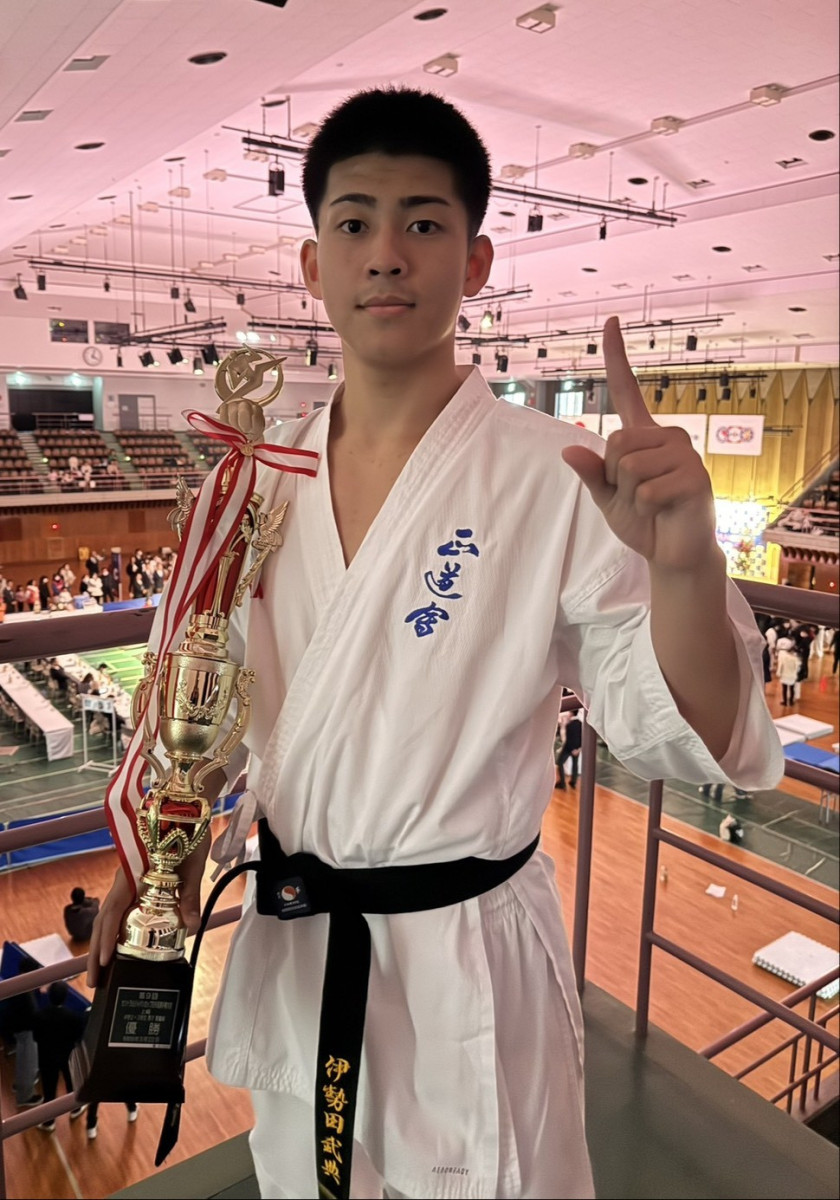 第9回セントラルジャパンカップ空手道選手権大会が 3月22日、愛知県武道館で行われ中学2、3年生重量級60㎏以上で伊㔟田武典くんが優勝しました。