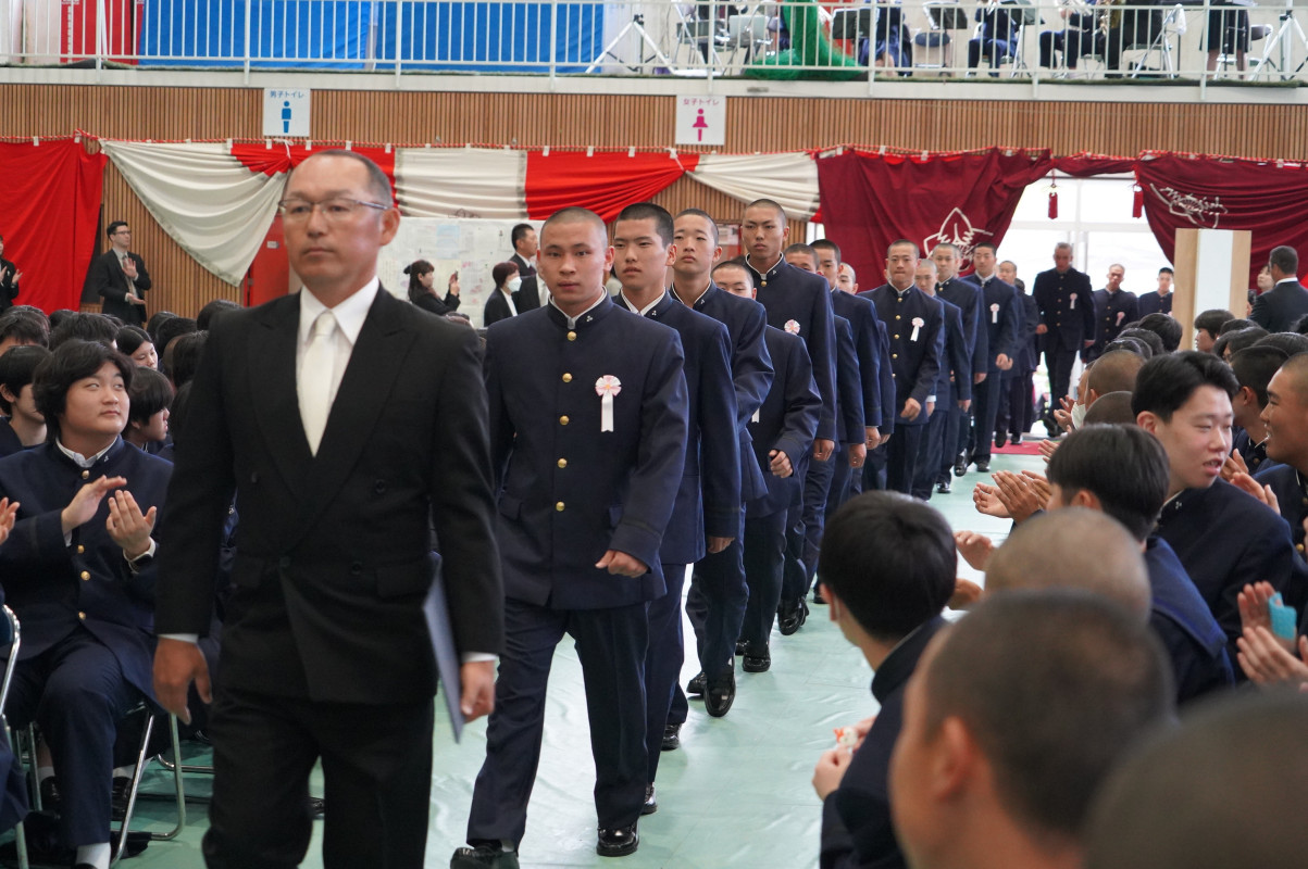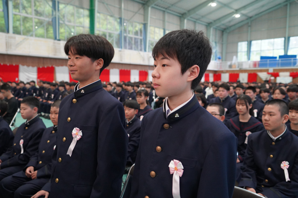 4月10日、令和8年度入学式が本校体育館にて厳かに挙行されました。前日から降り続いていた雨の中でしたが、新しい制服に身を包んだ新入生282名を無事にお迎えすることができました。入学式終了後には雨も上がり、新たな学校生活の門出を祝福するかのような穏やかな空が広がりました。